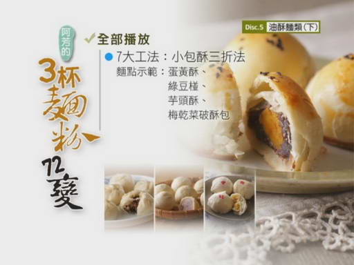 阿芳老師的廚房教室-3杯麵粉72變 第5集 (阿芳老師教你從3大麵類、7大工法出發輕鬆變出72道新鮮、健康、無人工添加的麵點)(DVD一片裝)